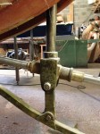 La caisse de la crémaillère n’était plus en état et il a donc fallu la changer; pour les non initiés, ci-dessous quelques photos du système à crémaillère des pinasses qui permet, sur une ligne d’arbre classique, de relever l’hélice afin de bénéficier d’un tirant d’eau minimum; cela est rendu possible par l’utilisation d’un cardan situé à l’extérieur de la coque juste après le presse-étoupe dans la boite à cardan.